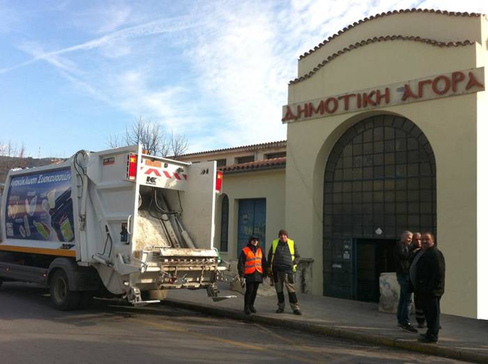 Συγκεκριμένα, απομακρύνθηκαν οι κάδοι απορριμμάτων και ανακύκλωσης από τις εισόδους του κτηρίου της Δημοτικής Αγοράς και περιμετρικά αυτού, ενώ η αποκομιδή όλων των απορριμμάτων και των ανακυκλώσιμων πραγματοποιείται με δύο απορριμματοφόρα τα οποία περισυλλέγουν όλα τα απορρίμματα, δύο φορές την ημέρα.