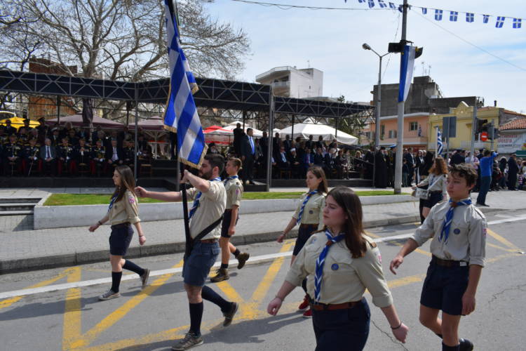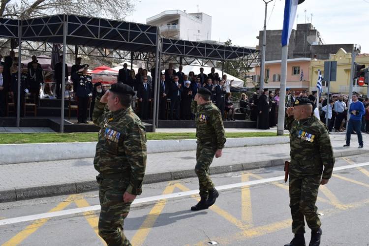 Ο Δήμαρχος Χ. Δημαρχόπουλος τόνισε ότι αξίζει τιμή και δόξα σε όσους αγωνίστηκαν για την εθνική ανεξαρτησία και έδωσε συγχαρητήρια στα τμήματα και τους συμμετέχοντες για τους άψογους σχηματισμούς.