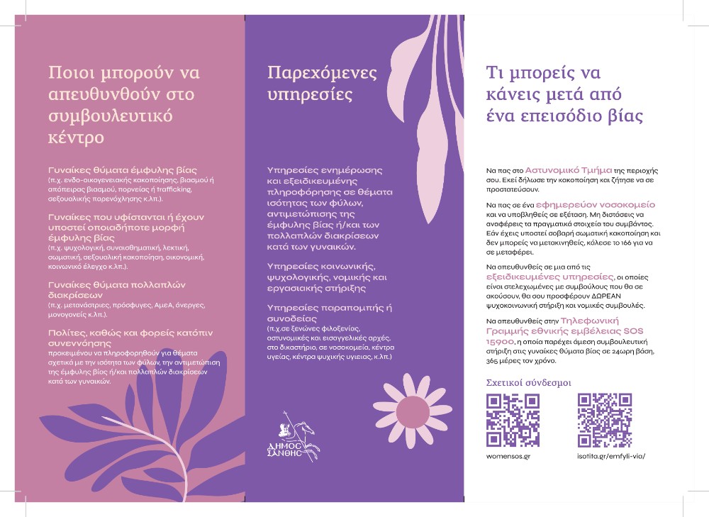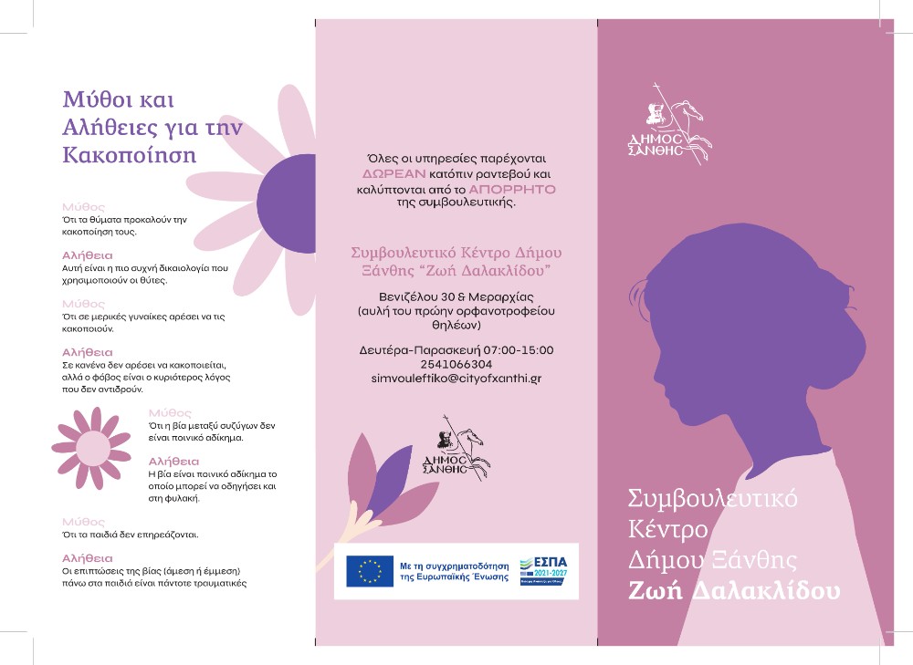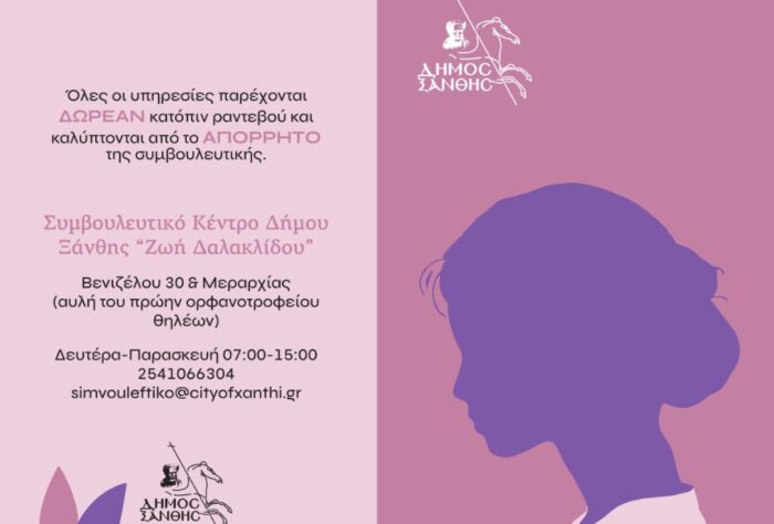 Ώρα 12.00 – Εγκαίνια Συμβουλευτικού Κέντρου Υποστήριξης Γυναικών Θυμάτων Βίας Δήμου Ξάνθης ”ΖΩΗ ΔΑΛΑΚΛΙΔΟΥ” .