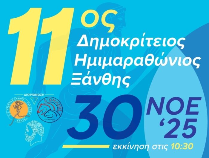 Ο Αθλητικός Σύλλογος Δρομέων Ξάνθης “Xanthi Runners” και ο Α.Π.Σ. Διομήδης Ξάνθης, σε συνεργασία με τον Δήμο Ξάνθης, τον Δήμο Αβδήρων και την Περιφέρεια Ανατολικής Μακεδονίας – Θράκης, διοργανώνουν τον 11ο Δημοκρίτειο Ημιμαραθώνιο Ξάνθης την Κυριακή 30 Νοεμβρίου 2025.