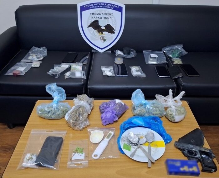 Αναλυτικότερα, σε μία περίπτωση, την 24-11-2025 το μεσημέρι στην Αλεξανδρούπολη, αστυνομικοί του Τμήματος Δίωξης Ναρκωτικών της Υποδιεύθυνσης Δίωξης και Εξιχνίασης Εγκλημάτων Αλεξανδρούπολης έπειτα από κατάλληλη αξιοποίηση πληροφοριών για διακίνηση ναρκωτικών ουσιών στην ευρύτερη περιοχή της Αλεξανδρούπολης πραγματοποίησαν συντονισμένη επιχείρηση, κατά τη διάρκεια της οποίας συνέλαβαν τέσσερις ημεδαπούς – μέλη εγκληματικής ομάδας ενώ αναζητείται ένας ακόμη ημεδαπός συνεργός τους, διότι σε έρευνες που πραγματοποίησαν σε οικίες και δωμάτια ξενοδοχειακού συγκροτήματος που χρησιμοποιούσαν οι δράστες εντόπισαν συνολικά και κατάσχεσαν μεταξύ άλλων: