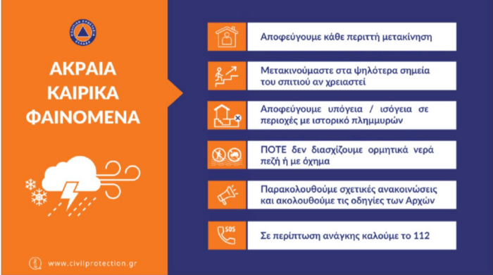 Ακολουθούν οδηγίες αυτοπροστασίας από την Γενική Γραμματεία Πολιτικής Προστασίας: